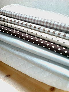 キルティング生地、リネン2種、ドット2種、チェック2種。