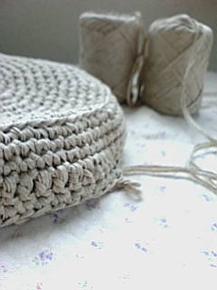 左のテープヤーンのほうはおそらく春の帽子になるかな。