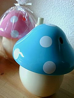 キノコさんのカタチのつまようじ入れになってます