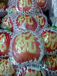 『寿』 『祝』 と文字が入ったりんご゙さん。