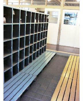 下の写真は学校入ってすぐの靴置き場なのですが