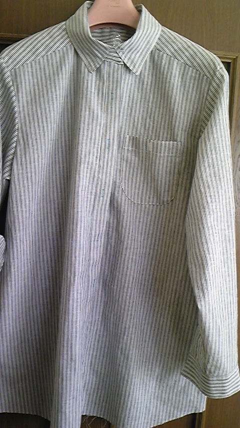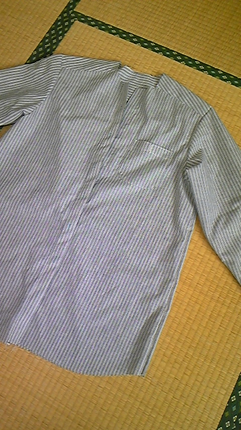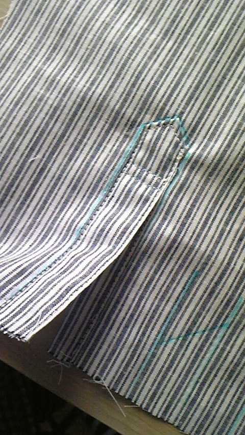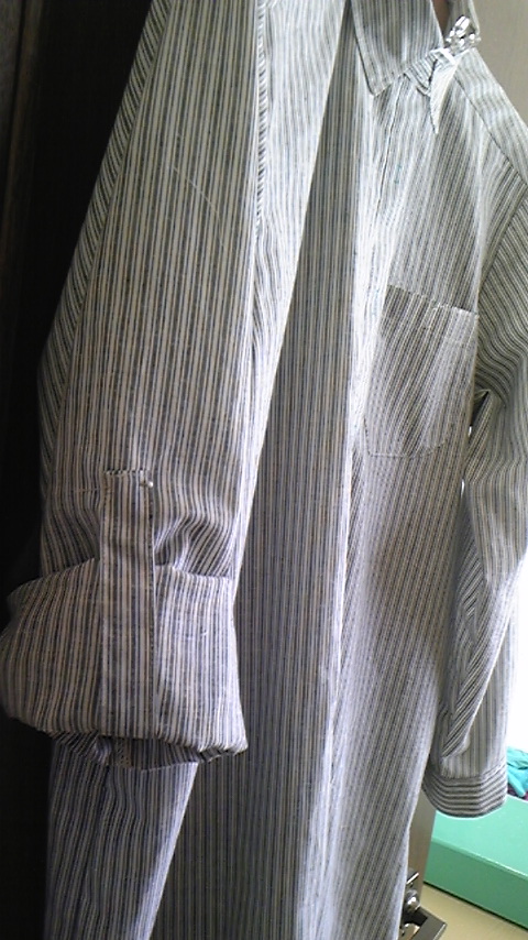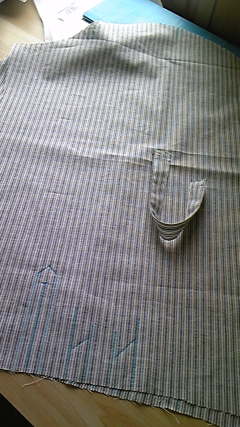 裁断、接着芯貼り、でー、縫いはじめて袖まできました。