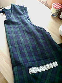 けど、袖作る生地が残っていないため予定通り袖なし割烹着を