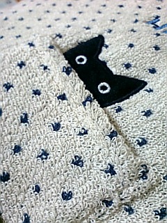 黒猫の上にあたしの名前がローマ字で刺繍されております。