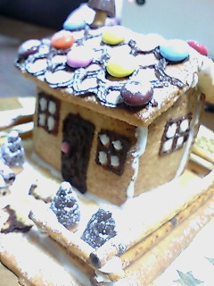 手作りでクッキーを焼いて、合体させたお菓子のお家です。