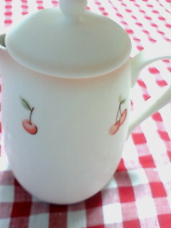 縦長のさくらんぼ柄のティーポット。