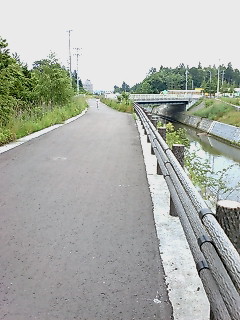 川沿いの遊歩道を歩くあたしと