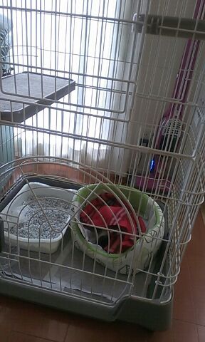 ケージから出てるときは人間にくっついて離れません
