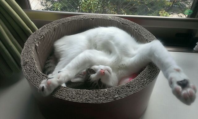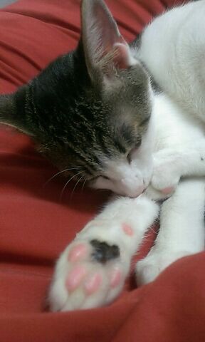寝るときは自分の後ろ足の肉球チュパチュパするフクちゃん。